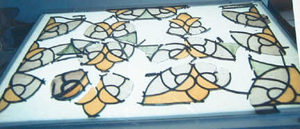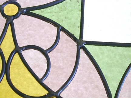 A neighbour gave me this old leaded glass panel. It was badly broken, and had no shape left. I layed it out as best I could. Click on the images to get a larger version of it.